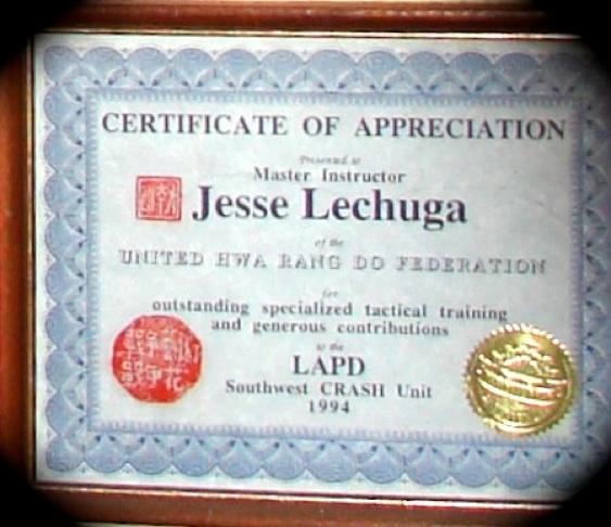 Documents and photos below attest to Master Instructor Jesse Lechuga’s martial lineage from the foundation of modern Hwarangdo in America